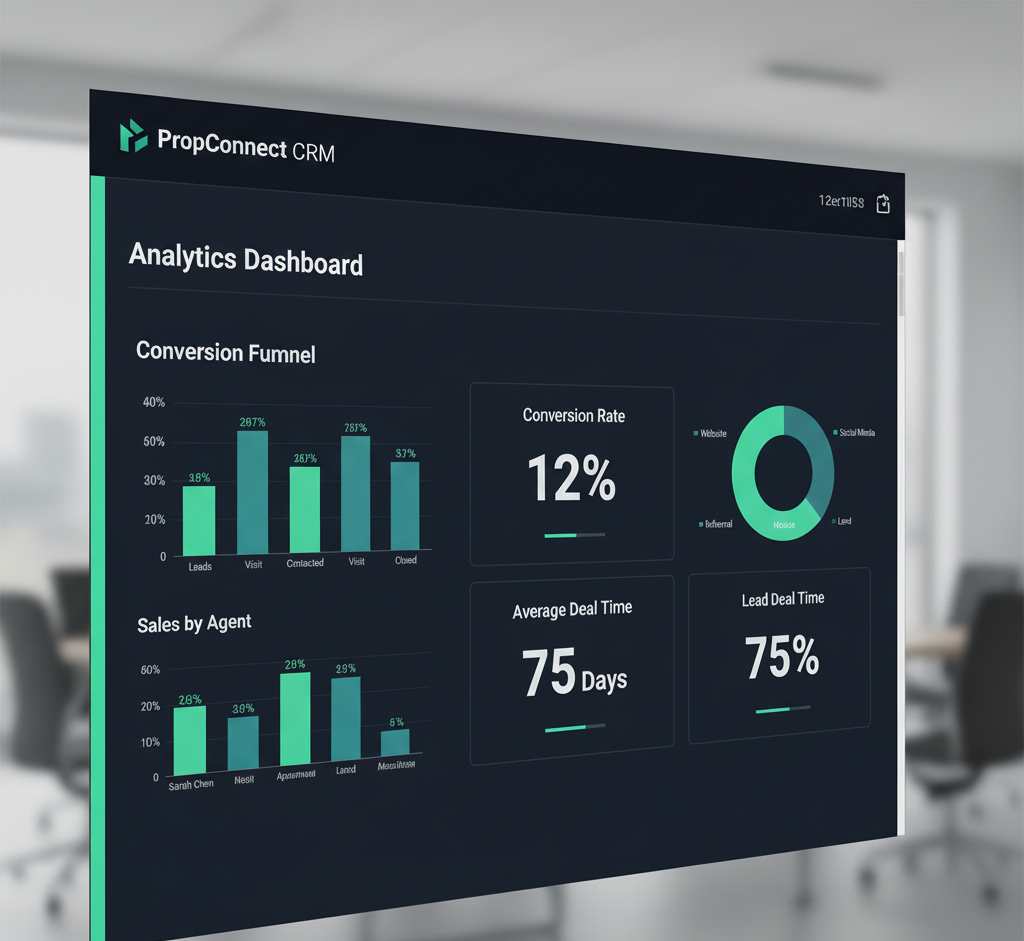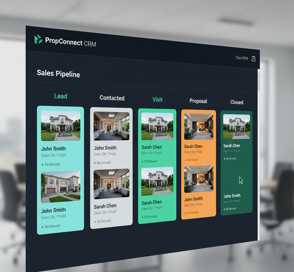 Sistema CRM especializado para inmobiliarias con gestión de leads, propiedades y automatización de seguimiento