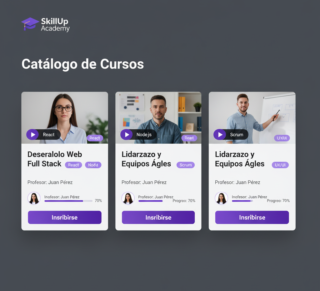 Plataforma LMS corporativa con gamificación, rutas de aprendizaje personalizadas y certificaciones